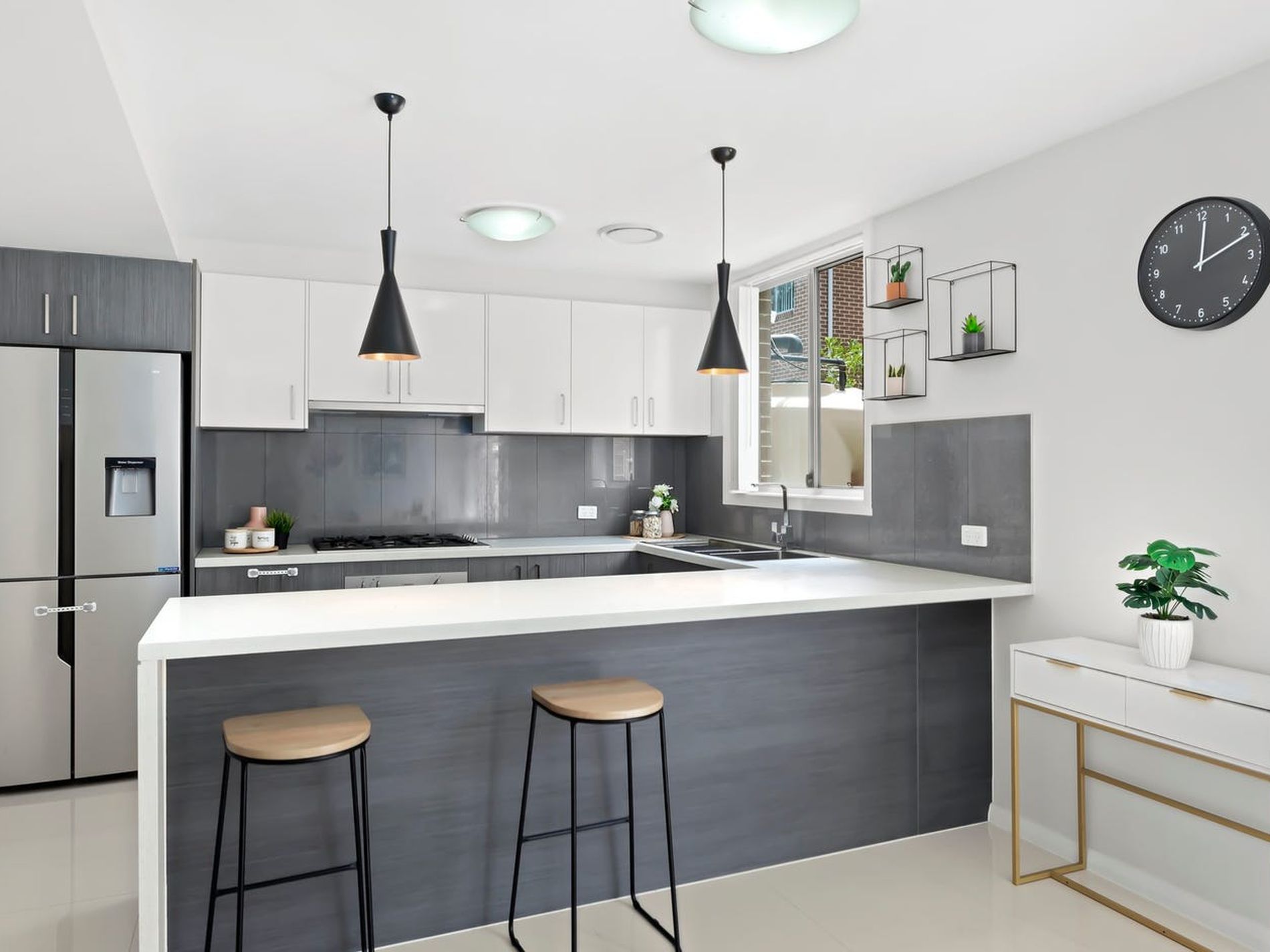 - A well-appointed kitchen with ample storage, stone benchtops, and gas cooking.